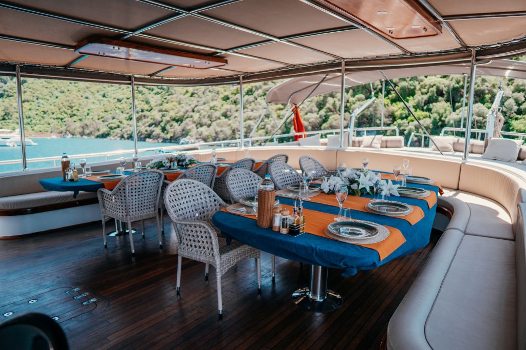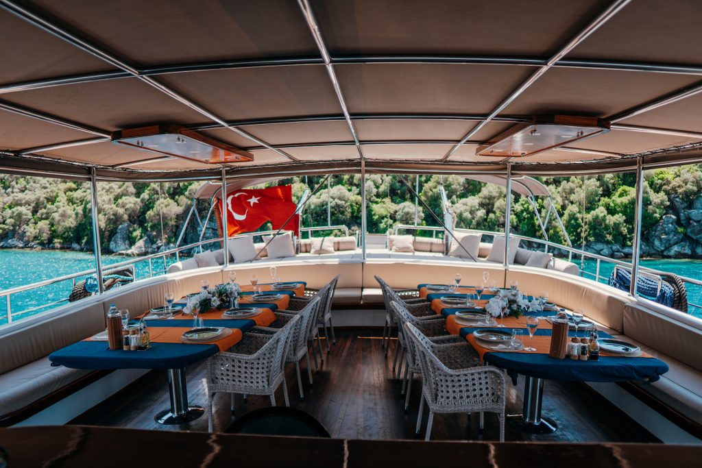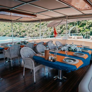 TV IN ALL CABİNS - MUSIC SYSTEM AT SALOON AND DECK - ICE MAKER - COFFEE MACHINE - WINE COOLER - TABLE GAMES - WIFI IN TURKISH WATERS