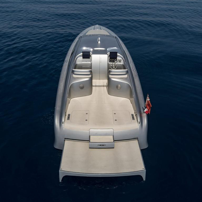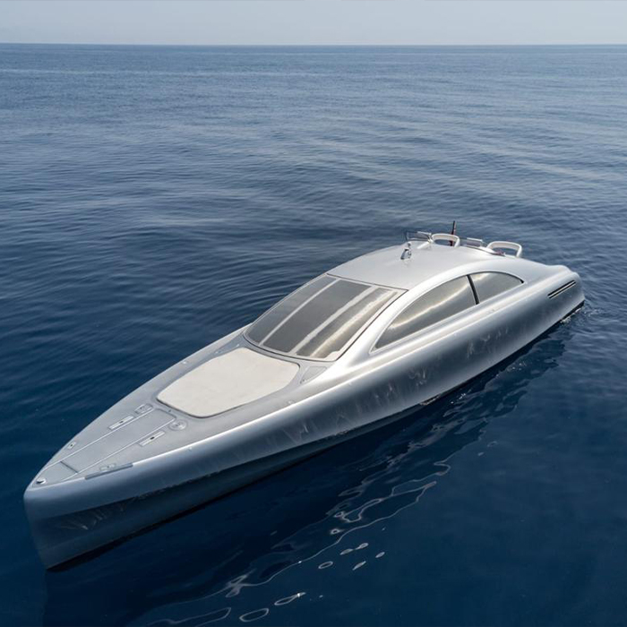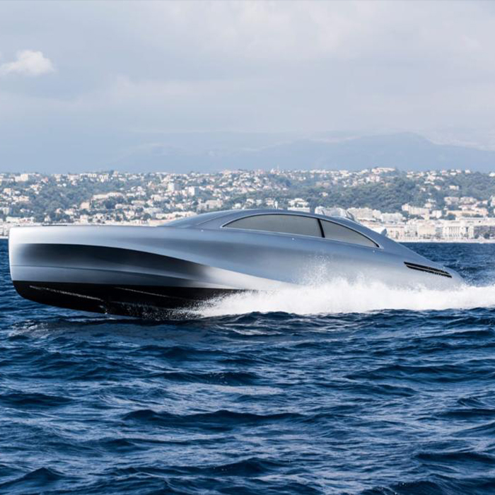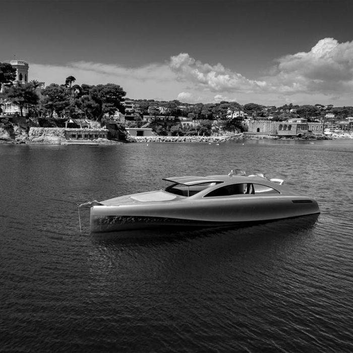 The luxury motor yacht “Arrow460–Granturismo” designed by Mercedes-Benz Style embarks on its maiden voyage off the coast of Nice. The first example of this new yacht model is named “Mercedes”, and true to the tradition of the name it founds a completely new boat concept. The 14-metre-long, 706 kW (960 hp) “Silver Arrow of the Seas” combines the performance of Mercedes-Benz sports cars with unique innovations from the boat industry. The yacht has classic automobile proportions that bring the hallmark Mercedes design idiom of sensual purity onto the water in a highly emotional and dynamic form. The yacht also combines the advantages of an open boat with those of a hull cabin cruiser in unique fashion. Its crossover design offers the ultimate in variability, resulting in a boat that is equally suitable for day trips and overnight stays on board. It was developed together with Silver Arrows Marine.