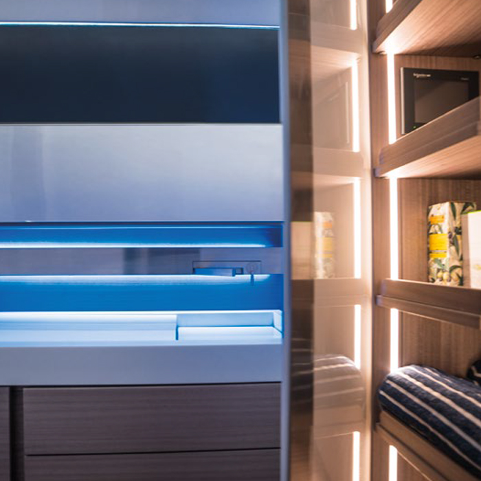 Built-in chilled wine storage and fridge